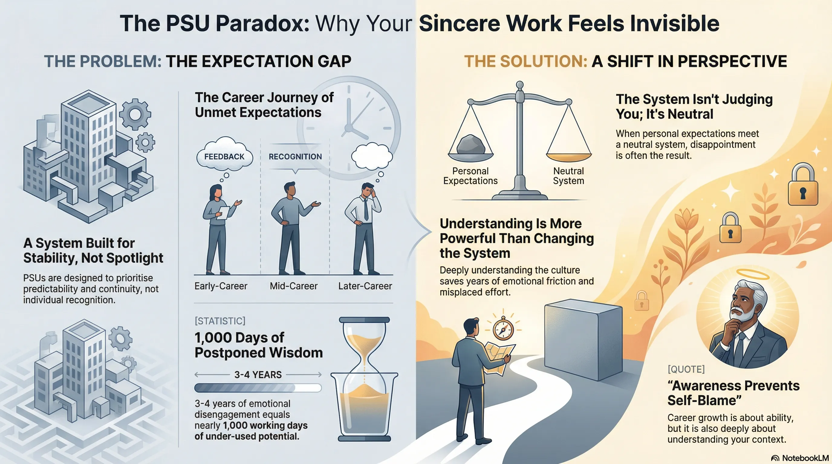 PSUs are built for stability and continuity. Employees learn when to voice their opinions and when silence is safer. They adapt to the culture but may lose sight of their own identity in the process.