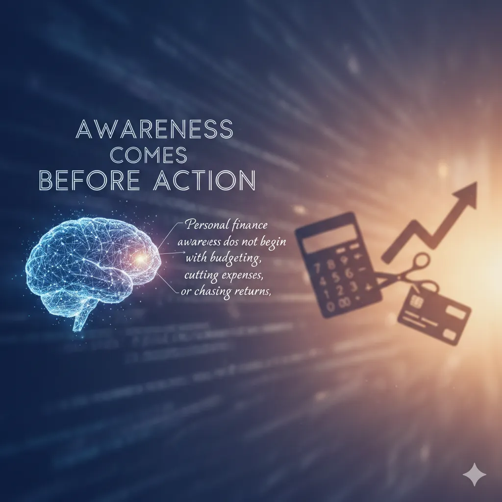 Personal finance awareness does not begin with budgeting, cutting expenses, or chasing returns.